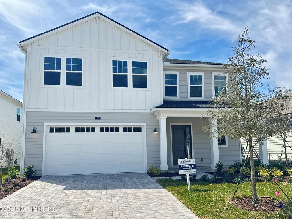 Step into modern-organic luxury in The Shores at RiverTown, one of the area's most coveted waterfront communities. This stunning home features a dramatic two-story foyer with a grand oak staircase and designer coastal light fixtures that create an inviting, airy welcome. Earthy tones and upgraded tile flooring flow throughout the main level, blending indoor comfort with natural beauty. The kitchen is a showpiece with stacked cabinetry, stainless steel appliances, and an oversized island—perfect for entertaining. A main-floor guest suite and cozy workspace add flexibility and function. From the backyard and private primary suite, enjoy rare, peaceful views of the St. Johns River. Upstairs, a spacious loft offers endless possibilities—media room, yoga studio, or creative retreat. Just minutes from the RiverClub amenity center, this home is a perfect balance of nature, elegance, and elevated coastal living.
