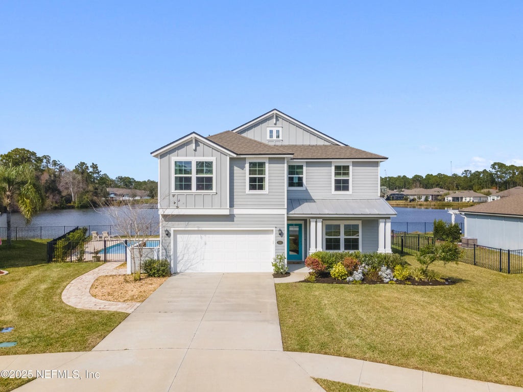 Welcome to 332 Lost Lake Drive, a charming 4-bedroom (+office), 4-bathroom family home in a secure gated community.The open-concept design connects a spacious kitchen with stainless steel appliances and solid surface countertops to the bright living and dining areas. The property features segregated outdoor spaces for family comfort, including a covered, screened lanai with a serene north-facing backyard, year-round shade, and a peaceful lake fountain. The private saltwater pool (added in 2023) is fenced for safety. Upstairs, a large family room is perfect for movie nights, and the master suite offers lake views. Enjoy community amenities like fishing, a playground, dog park, and green space. Just 2 miles from Crescent Beach, this home offers the ideal blend of luxury, safety, and Florida lifestyle.