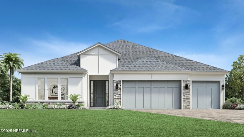 Discover the perfect blend of luxury and comfort in this stunning story home featuring 4 bedrooms, 3.5 elegant bathrooms and a private office. The gourmet kitchen is a chef's dream boasting a waterfall quartz island, premium appliances ample storage. Designed for seamless indoor-outdoor living, the extended covered lanai offers breathtaking water views, making this the ideal spot to unwind and and enjoy the stunning sunsets and water views. Located in the gated community of Newbrook. Toll Brothers new construction home estimated completion summer 2025 - Photos are not actual home