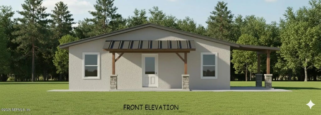 This brand-new 1,728 sq ft concrete block home blends quality craftsmanship with modern design. Featuring 4 bedrooms and 2 baths, it is built on a raised monolithic slab foundation with foam insulation for efficiency and durability. The home is topped with a 25-year galvalume metal roof and finished with painted stucco over block, complemented by white vinyl windows and farmhouse-style trim. Inside, you'll find luxury vinyl plank flooring throughout, smooth drywall finishes, and a bright, open layout. The kitchen offers poplar or maple shaker cabinets in white or gray, quartz countertops with matching backsplash, and a full stainless steel appliance package. Bathrooms include steel tubs with composite tile-look surrounds for style and easy care. Additional highlights include ceiling fans in the living room and all bedrooms, a dehumidifier with warranty, and Southern Air HVAC with a 10-year parts and labor coverage. Enjoy outdoor living with an uncovered patio plus the option to upgrade to a covered pergola porch. Engineered plans and permits are included. Buyer to handle site clearing, landscaping, and driveway. All information pertaining to the property is deemed reliable, but not guaranteed. Information to be verified by the Buyer. Be advised that cameras may exist recording audio and video inside/outside the property, such as ring doorbells. Photos are digitally enhanced and could be altered, please verify.