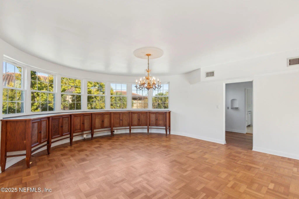 At 1815 Largo Road, Jacksonville, FL, an exceptional rental opportunity awaits those seeking a blend of thoughtful design and modern comfort. This expansive upstairs unit, covering the entire building footprint, offers over 2,000 SF of living space, featuring four spacious bedrooms and three full bathrooms. Central to its charm is a circular living room, where sweeping views of the man-made Lake Marco provide a serene backdrop. Nearly every window frames this tranquil body of water, offering a unique and picturesque panorama. The expansive outdoor terraces extend the living space, ideal for morning reflections or intimate gatherings amid the scenic surroundings. Inside, a wet bar adds a touch of convenience, enhancing your entertaining experience. The unit also includes assigned garage parking, ensuring both ease and security for your vehicles. This residence showcases architectural finesse with a layout that balances spaciousness and intimacy. It presents a harmonious blend of well-appointed indoor spaces and tranquil outdoor environments. At 1815 Largo Road, every detail contributes to a truly exceptional rental experience, where design and location come together to provide an inviting and refined living environment.