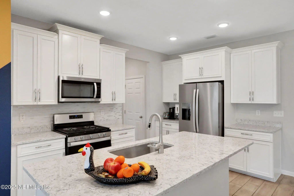 Experience luxury & comfort in the exclusive Rivertown North Lake neighborhood! This stunning 2020-built home offers 5 beds, 3 full baths, and 2,385 sq ft of beautifully designed living space. The open-concept layout features a gourmet kitchen with upgraded white cabinets, quartz countertops, and an oversized island that flows into a spacious family room — perfect for entertaining. Enjoy wood plank tile flooring, a versatile 2nd floor flex room, and a covered back porch overlooking the backyard. Relax on the charming front porch or take advantage of community amenities the whole family will love. Complete with a 2-car garage, this home combines modern elegance with family-friendly living in one of Rivertown's most desirable communities.