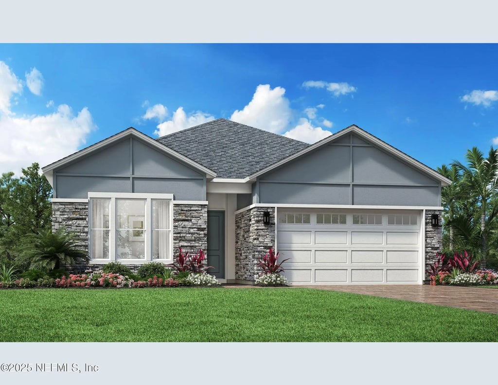 Behind the gates of Newbrook in St. Johns County, this quick move-in Oceana Transitional offers 4 bedrooms, 3 baths, and stylish finishes throughout. A wide foyer leads to soaring ceilings, luxury vinyl plank floors, and a bright kitchen with quartz countertops, 36'' gas cooktop, built-in oven/microwave, and upgraded cabinetry. The kitchen opens into the Great Room with a tray ceiling and 12' multi-slide glass door leading to a covered lanai—perfect for Florida living. The primary suite features dual vanities and a heavy glass walk-in shower. Three additional bedrooms offer flexibility for guests or office space. With sleek lighting, designer tile, paver driveway and lanai, tankless gas water heater, and a water softener loop, this home blends comfort and style. Schedule your private tour today!