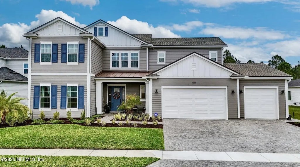 Experience Luxury Living in Saint Johns! Welcome to this stunning 5-bedroom, 4-baths home in the Bartram Ranch community. Built in 2024, this 4,189 sq. ft. residence blends modern design with timeless elegance, sitting on a spacious 0.25-acre lot. Step inside to a grand open floor plan featuring soaring ceilings, designer finishes, and luxury flooring throughout. The gourmet chef's kitchen is a masterpiece, boasting top-of-the-line stainless steel appliances, 42'' upgraded cabinetry, quartz countertops, an oversized island, perfect for entertaining. The first-floor primary suite is a private retreat with dual walk-in closets, an en-suite spa bath featuring an oversized walk-in shower, a freestanding soaking tub, and separate vanities with upgraded tile surrounds. Upstairs, a spacious loft provides the ideal flex space for a media room, game room, or additional lounge area. Enjoy Florida's outdoor lifestyle on the covered lanai. The 3-car garage offers ample storage.