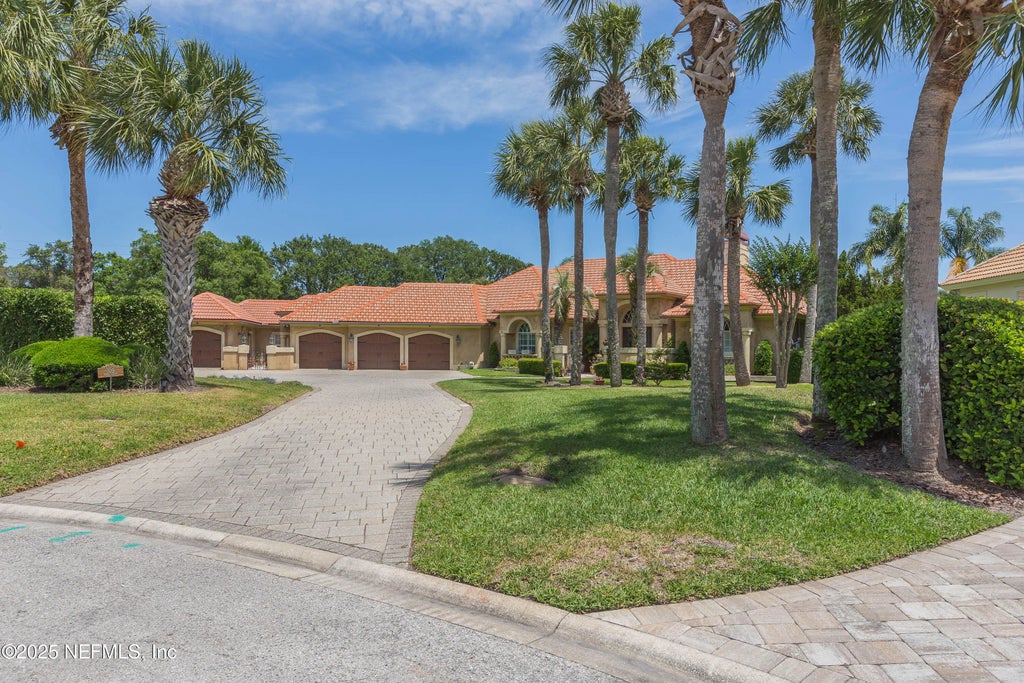 Tucked away on a serene private cul-de-sac, this exceptional estate home offers stunning water views and resort-style living in one of Ponte Vedra Beach's most prestigious gated communities. Thoughtfully designed with a mostly single-level floorplan, the home features an open-concept layout that flows seamlessly from the spacious great room to the gourmet kitchen—ideal for both everyday living and elegant entertaining. Pocket sliding glass doors invite you to the expansive screened lanai, where a luxurious pool and spa create a true backyard oasis. Enjoy year-round relaxation and entertaining in this resort-like setting, with panoramic water views as your backdrop. The main house includes a richly appointed custom office with warm wood paneling, three generously sized bedrooms on the first level, and a private upstairs suite perfect for guests or family. A separate guest house adds an extra layer of privacy and flexibility, complete with its own kitchen, great room, and bedroom ideal for multigenerational living or long-term visitors. Additional highlights include a 4-car garage, premium finishes throughout, and all the world-class amenities The Plantation at Ponte Vedra Beach has to offer, including golf, tennis, beach club access, and more. Schedule your private showing today to experience the elegance, privacy, and lifestyle this one-of-a-kind home delivers.
