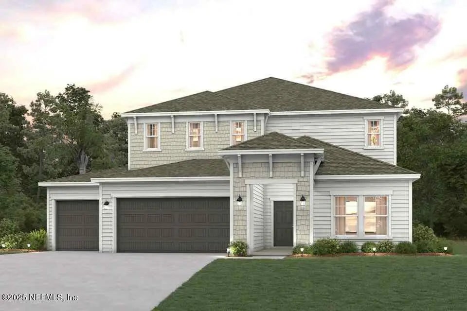 Under construction. The versatile Silver Maple welcomes you with a charming front porch. Inside, a dramatic two-story foyer leads to a spacious study and open-concept living space including a casual dining area, a large chef's kitchen with a center island, and a great room with access to the patio. Additional main-floor highlights include a secluded owner's suite, featuring a sprawling walk-in closet and an en-suite bath with dual vanities and a separate tub and shower. Upstairs, a loft provides access to a full hall bath and four generous secondary bedrooms each with a walk-in closet and one with its own private bath. Includes a 3-bay garage! Ask about builder incentives NO CDD Stock photos of a model home