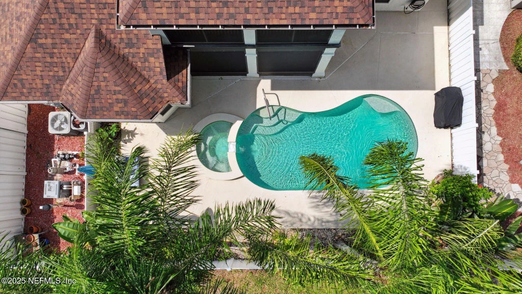 Beat the heat in one of the lowest priced pool homes in Julington Creek Plantation. Private owners suite, split floor plan and tropical backyard oasis make this a perfect home for families with teens! Upstairs you'll find a private owner's suite overlooking preserve and pool. Two spacious secondary bedrooms with Jack-and-Jill bath, living room, dining room, laundry, and half bath are on the first floor. New roof in 2022; exterior paint, gutters, pool resurfacing in 2023. Upgrades continue in the eat-in kitchen where new granite countertops and stainless-steel appliances were installed in 2024. St. Johns County schools, and summer pool parties await!