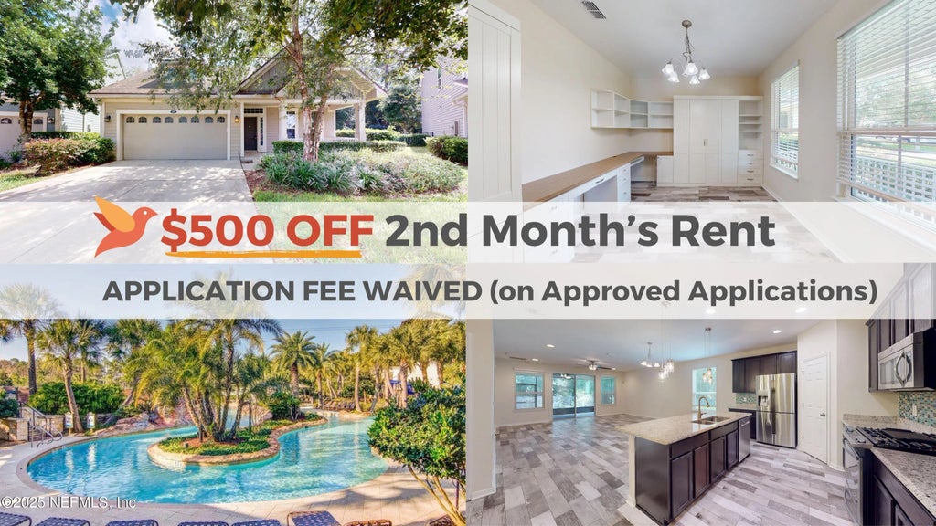 *** AVAILABLE NOW *** **Limited-Time Special - Application Fees Waived on Approved Applications!** ** $500 OFF SECOND MONTHS RENT** Twenty Mile at Nocatee, 3-bedroom, 2-bath fully-fenced home offering an open floor plan with nearly 2,000 Sq Ft of space with wood-look tile in all main living areas! The kitchen boasts 42' cabinets, granite counters, under-cabinet lighting, a large island, and breakfast nook. Flex room includes a built-in desk, Murphy bed, and craft table. The split layout provides a private owner's suite with tray ceiling, garden tub, dual sinks, and walk-in tile shower. Enjoy peaceful preserve views from the screened lanai and a fully fenced backyard. Resort-style amenities include pools with lazy rivers, water slides, fitness centers, sports courts, and more. Tenant is responsible for lawn care and maintenance. Pets welcome with a pet fee.