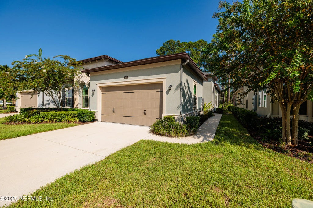 **MOTIVATED SELLER** $7,500 Buyer incentive for closing costs if under contract by 10/15! LUXURY VILLA w/tall, coffered ceilings, crown moldings & designer accents make this Cal-Atlantic built villa the perfect answer to low/no maintenance living! 3bed/2bth single story layout with gourmet kitchen showcases the quartz countertops, large island, double-stacked cabinetry & modern pendant lights. The kitchen, dining area & great room are ideal for entertaining. Triple sliders lead to a lovely screened lanai with fire pit & gas grill to convey. Primary suite has custom closet & trey ceiling plus spa-like bath with super shower & rain head. Plantation shutters throughout and hardwood-look plank tile flooring are a show stopper. W/D & lanai furniture are negotiable. Fire pit & infra-red gas grill can stay. Villas at Nocatee is a wonderful, small enclave of attached homes with its own pool & fireplace. Plus, you'll have access to ALL Nocatee amenities just outside your doors. Nocatee is consistently rated a top-tier master planned community with highly-ranked public schools. Take a quick stroll, bike ride, or golf cart distance to Nocatee's busy Town Center, complete with shops & conveniences, a monthly Farmer's Market, miles of greenway trails, sport fields, tennis, pickle ball, volleyball & basketball courts, multiple dog parks, and the amazing Splash & Spray water parks. Town Center boasts (2) Publix, (and a 3rd one building out now!), several dining options including the brand new NOCATEE CHOP HOUSE steakhouse , the Coastal Wine Bar & Tapas, MShack, Bronz Pizza, Tank's Sushi, Starbucks, and only a short drive to the beach! Come live the FLORIDA lifestyle here in Nocatee!