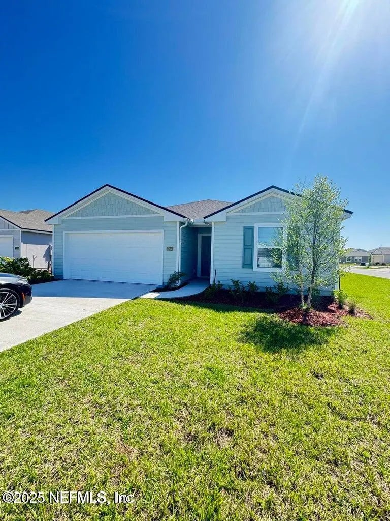 This adorable corner lot home has never been lived in! Open airy floor plan with split bedrooms and all white kitchen features stainless steel appliances that overlooks sliding patio doors out into small backyard. This has a 2 car garage. Fully fenced yard. Comes with new washer and dryer. Pets case by case basis.
