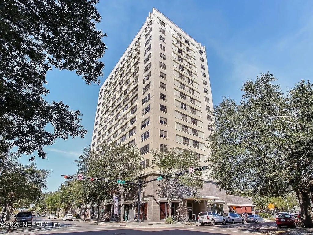 FIRST MONTH FREE!! 14th floor views of the city! Welcome to this one-bedroom condo offering breathtaking panoramic views of downtown Jacksonville. Step inside to find a beautifully updated space featuring cherry wood kitchen cabinets, a refrigerator, and a smooth-top range. The spacious bedroom boasts ample closet space and stunning city views, while the bathroom showcases a walk-in shower with a decorative frameless glass panel. Also includes multiple amenities such as on-site fitness center, game room, lounge area, laundry, secure entry with security guard, and more.