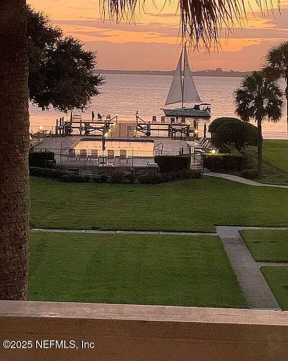 Spacious WATERFRONT executive condo with 2 bedrooms and 2 full baths on the St. John's River in prime SAN MARCO location. This freshly updated 2 story end unit in THE ALEXANDRIA has 1,700 square feet of living space with a large, light filled kitchen with a breakfast nook and stainless steel appliances; a dining room; a living room on the first floor; a second story loft living room or office with a fireplace (with electric logs); a large deck overlooking the St. John's River; a beautiful pool, and a new dock/pier. Enjoy water views from every room and paddle boarding, kayaking, fishing and sunbathing from the pier. It is a short walk to Wolfson's Children's Hospital, MD Anderson, Nemours, historic San Marco Square, and downtown and short drive to NAS JAX and the Airport. This unit has just been freshly painted throughout, an energy efficient HVAC system, hot water heater and appliances; refinished hardwood floors in living room, dining room, kitchen; with carpet in the remainder. Floor plan has the kitchen, dining room, living room and a bedroom and a full bath on main floor with a bedroom, a full bath and an additional living room loft on the 2nd floor. This 2 story floor plan allows for more privacy for roommates and/or guests which can make it ideal for 2 professionals. Condo fees, access to the amenities, parking, water, and trash removal are included in the rent. Tenant is responsible for electric. Non Smoking Unit.