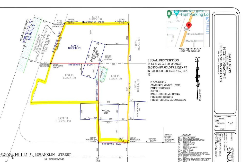 Expand your portfolio with this exceptional land package featuring 3 lots total (2 tax parcels), located at 615 N US 301 Hwy. The first parcel includes Lot 2 and Lot 15 combined, and the second parcel is Lot 13. Both parcels are being sold together, offering a rare opportunity to secure multiple lots in one purchase. Price includes both tax parcels (3 lots total). Prime frontage along US 301 Hwy N. Corner access at Beaver St W. Strong traffic flow in a growing Baldwin area. Perfect opportunity for investors, developers, or entrepreneurs seeking visibility and expansion. The lot previously had a mobile home, which has been removed. Utilities are available. A survey of both parcels is available upon request. The buyer must verify zoning, acreage, development possibilities, and utilities.