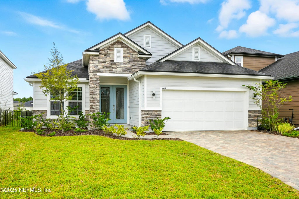 Gorgeous lakefront home in Silver Landing in Silverleaf, the top community in St. Johns county with no CDD fees! Stone accent on the exterior and double glass entry doors invites you into this amazing find. Less than a year old, in top condition. this 3- or 4-bedroom home is a dream. It features a study, 3 bedrms, 2 baths downstairs, w a huge bonus room, full bath upstairs. The upstairs bonus room is buyers' choice as either an enormous family bonus room/full bath, or as a lovely 4th bedroom/full bath. Great kitchen with customized pantry, quartz counters, built-in appliances. Tile & LVP throughout, no carpet in this gorgeous home. Spacious family room overlooks a covered, screened lanai with a big yard on a stunning lake view. Master bedroom has the same gorgeous view, separate shower/tub, double sinks and large walk-in closet. Guest rooms are spacious, good counter space in the downstairs guest bath. This home is both beautiful and comfortable.