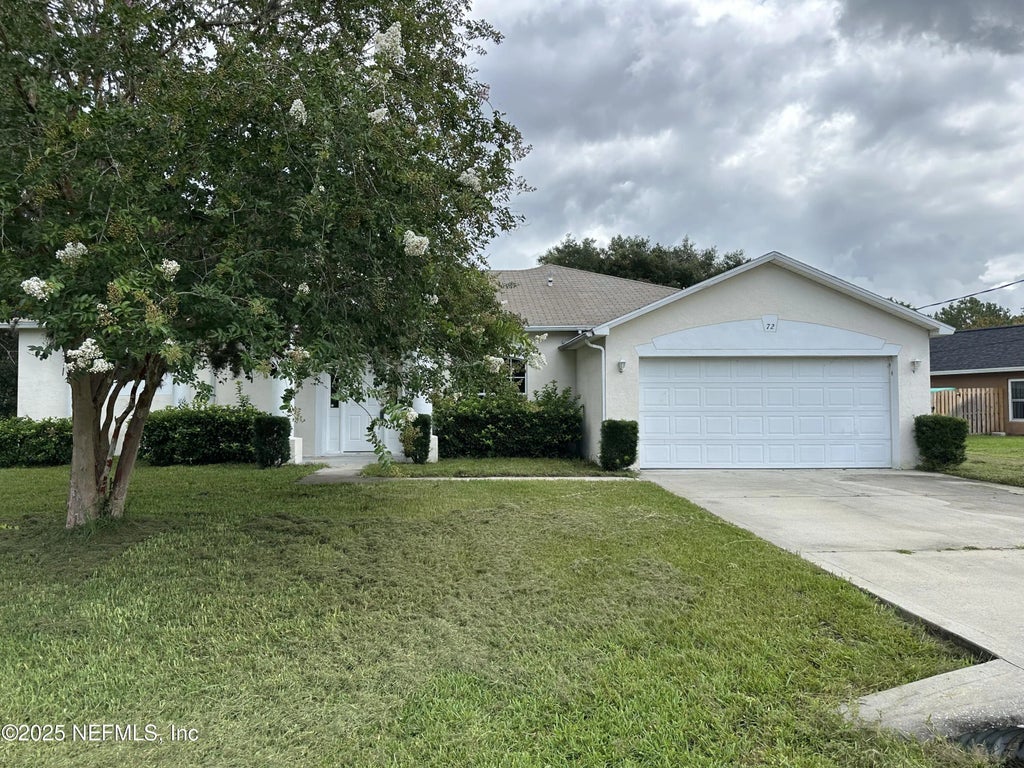 This beautifully maintained block and stucco home combines comfort, style, and convenience. Nestled in a peaceful neighborhood yet just minutes from shopping, dining, and the interstate, it offers the best of both worlds: tranquility and accessibility. Inside, the open floor plan is designed for both everyday living and entertaining, featuring three spacious bedrooms and two full baths, including a private owner's suite with a serene view of the backyard woods. The secondary bedrooms are generously sized, providing flexibility for guests, family, or a home office. The kitchen serves as the heart of the home with an island, ample counter space, and wood cabinetry, opening seamlessly to the dining area and family room. Multiple living spaces, including a formal living room, family room, and separate dining area, provide options for gathering or privacy, while neutral tones and abundant natural light create a warm, inviting atmosphere. A covered lanai overlooks a private backyard that backs up to the woods, offering extra peace and privacy for morning coffee or evening relaxation. With a split bedroom design, large driveway, and two-car garage, this home is move-in ready and offers a balance of space, privacy, and convenience that is hard to find.