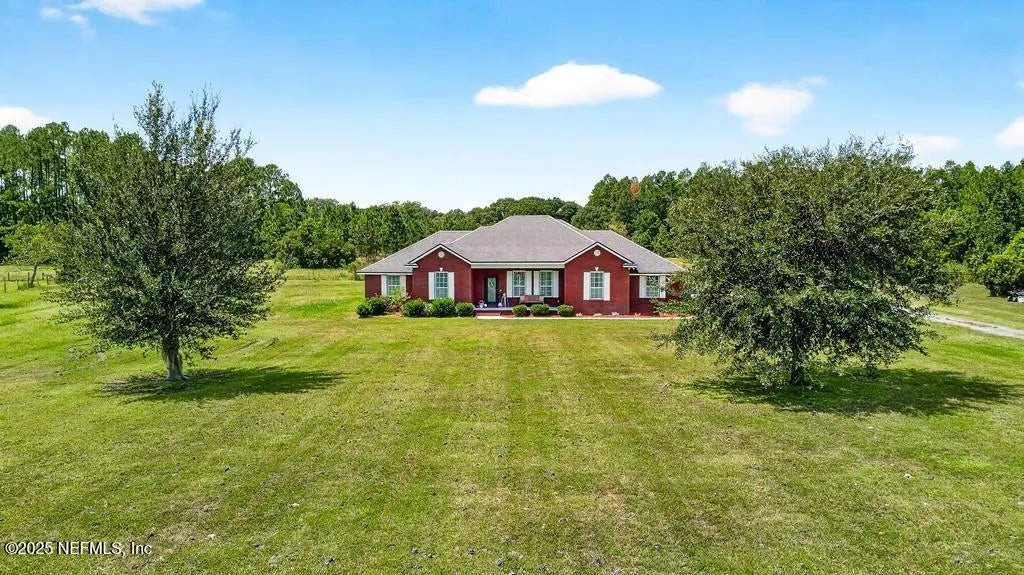 Custom Brick Home on Over 2 Acres! This beautifully maintained 3-bedroom, 2.5-bathroom home offers space, style, and flexibility for your family. The open-concept floor plan features 12-ft ceilings in the dining room, living room, and master suite, creating a bright and airy feel. The master suite includes an ensuite bathroom and an additional office/nursery/workout room perfect for your lifestyle needs. The kitchen is equipped with custom cabinetry, Corian countertops, and plantation shutters accenting both the dining and breakfast areas. Sitting on 2+ acres, this property provides privacy and room to grow with no HOA or CDD fees. Located in a highly sought-after area with A-rated schools.