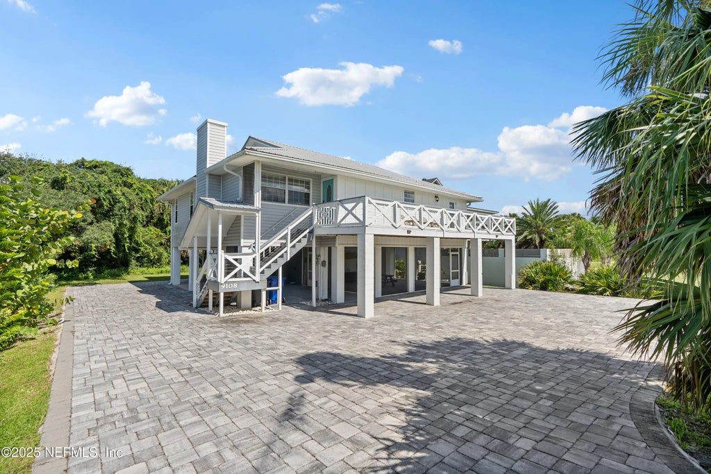 Your Dream Beach Escape Awaits! This stunning coastal retreat has been completely renovated and offers 4 bedrooms, 3 baths, and 2,536 sq ft of luxurious seaside living! The open-concept upper level wows with a designer kitchen, huge island, cozy fireplace, and seamless flow to the oversized deck with breathtaking sunset views. The massive primary suite is a true sanctuary with a private balcony, spa-style bath, and walk-in closet. Two more bedrooms, guest bath, and laundry complete the main home. Downstairs, a private apartment with full kitchen and luxe bath is perfect for guests or vacation rental income. Outdoor living is a dream — enjoy a screened lanai, sunrise & sunset decks, huge paver patio, and refreshing ocean breezes. Steps to Matanzas Inlet Beach, with no HOA, no CDD, no flooding — and sold fully furnished! Airbnb income opportunity. Open to offers!