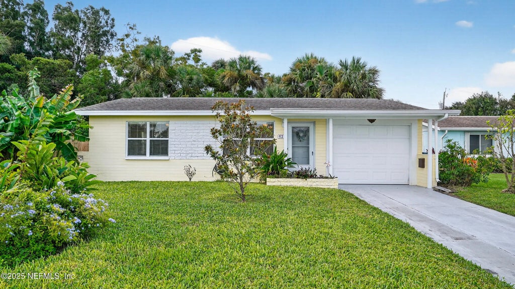 Tucked between the Atlantic & the Intracoastal in peaceful Ormond-by-the-Sea, this solid concrete-block 2BR/2BA beachside retreat blends low-maintenance living with coastal convenience. Large one car garage, laundry room off the garage. Sunlight pours across easy-care tile floors & into a cheerful sunroom—perfect as a morning coffee nook, art studio, or office. The Home layout offers a flowing floor plan, while the kitchen opens toward the main living area for effortless everyday ease. Step outside to a private backyard with room to dine al-fresco on the patio, garden, or add a firepit under the stars. Just minutes to beach walkovers, scenic river parks, local cafés, and miles of shoreline—come live the relaxed Ormond by the Sea lifestyle. HVAC is 1 year old