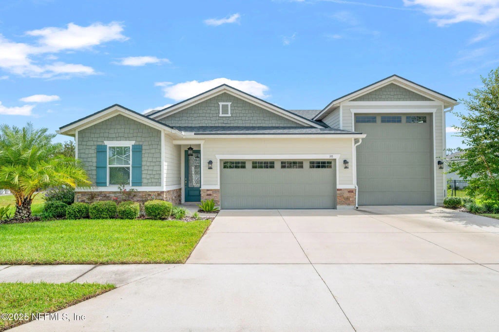 Spacious RV garage home in St Augustine South w/ 3 bedrooms, 2 full baths & 2 add'l car spaces. This 2020 built home sits on an 80' wide pond front lot w/10' set backs & easement on north side provides generous space between homes. Easterly views providing amazing sunrises over the water. As you enter the home, there are two bedrooms & full bath. Custom kitchen w/a beautiful backsplash & GE appliances opens to the family, dining room & enlarged lanai. The lanai has been expanded behind the RV garage where the 7 month new Caldera Spa sits, waiting for you to enjoy relaxing w/ family & friends. (Spa conveys at no charge w/full price offer.) Spacious primary bedroom w/water views boasts a beautiful en-suite bathroom, large walk-in closet, shower & linen storage. A walk-in pantry & laundry room w/ wash tub offer add'l storage. Garage has space for 2 cars & RV w/ 50-amp service. RV garage space is 45'D x 16'H ceiling. (Class-A RV is also for sale sep from home.) Some furn negotiable See list in docs for more information regarding furniture that is negotiable. Class-A RV will be for sale outside contract for home. Items to convey with full price offer: Caldera Spa, GE kitchen appliances, TV on living room wall, Ceiling fans & light fixtures, window treatments, water softener, Ring front door camera, shelves & storage items attached to wall in garage. NOTE: Washer & Dryer & Work Bench in RV garage space DO NOT convey. Homes with RV garages are perfect for RV's, 5th wheels, boats, lawn maintenance trailers, work trucks, fitness center & more! Schedule your showing today!