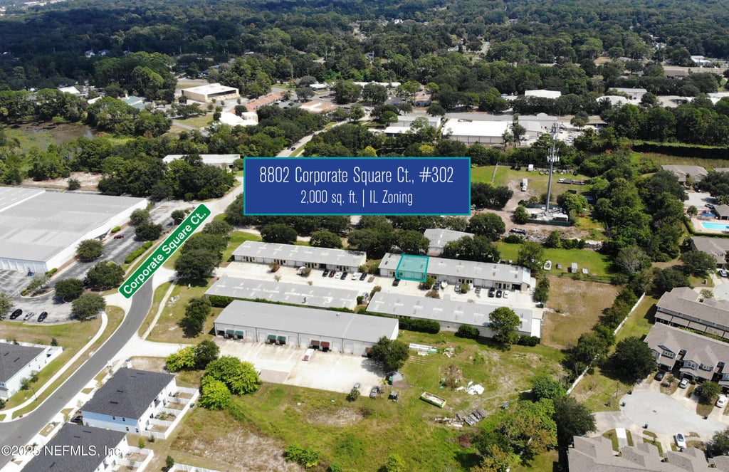 8802 Corporate Square Court is located in Jacksonville's Southside sub-market, positioned in a well-regarded industrial/business park just off I-295. The property spans roughly 29,680 SF across four flexible buildings, with spaces available in the 920 +/- SF - 1,840 +/- SF range. Each double unit contains two 12' wide × 12' high roll-up doors and high clear heights (approximately 14 ft), enabling efficient loading and access. The premises offers air-conditioned offices and bathrooms, ideal for tenants seeking a combination of warehouse, light manufacturing, or distribution functionality. -Highly desired industrial park -Close to I-295 -Zoned Industrial Business Park (IBP) -NNN Expense $4.50 p.s.f.