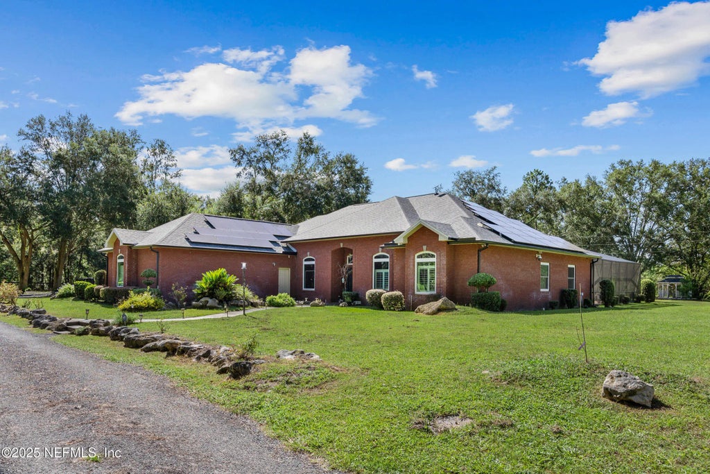 WOW!! Just over 27 acres in beautiful Live Oak, Florida - this truly one-of-a-kind estate offers privacy, self-sufficiency, and endless amenities. The spacious residence features over 3,300 SF with 4 bedrooms and 3 baths, thoughtfully upgraded with major improvements in recent years including: a new 30 x 50 RV building, a new gravel road, all new windows, a new water system, new cabinets, pool upgrades, Tesla, charging, and whole house generator. No deed restrictions and no HOA, so you'll enjoy complete freedom to make this property your own. Highlights include: Sustainable living with a full solar power system, a commercial-grade Generac backup, and a professional medical-grade reverse osmosis water system. Outdoor paradise with a spring-fed stocked pond, concrete saltwater pool with slide, hot tub, outdoor kitchen, deluxe fire pit, and multi-colored gravel footpaths. Family fun with a two-story treehouse and open pasture for recreation. Security & convenience with underground power, whole-property security system, and Tesla charging station. Multiple outbuildings provide incredible versatility: 48' x 50' pole barn, 30' x 50' four-car garage with roll-up doors, 30' x 50' brand-new RV storage building with outdoor entertainment area, 40' x 50' metal building with three 12' x 14' roll-up doors and a 16' x 20' dry storage building. Other features include a gas fireplace, stainless steel appliances, granite counters, office space, fencing & flag pole.