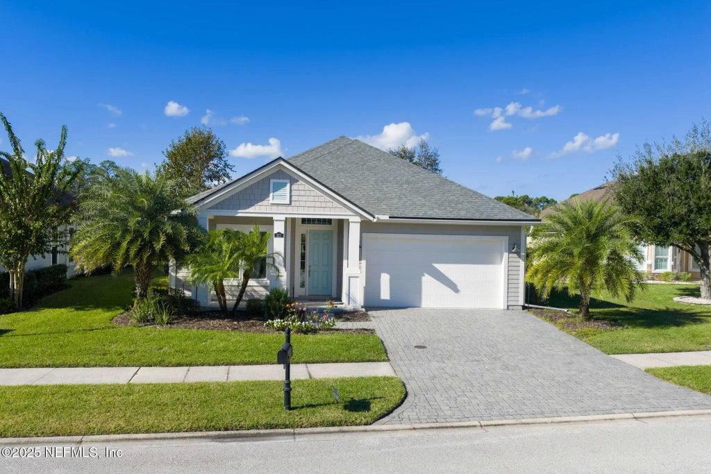 Top-quality upgrades define this elegant Riverside-built home featuring 3 bedrooms plus a den on a prime 65-foot waterfront lot in the sought-after Madeira community. Enjoy peace of mind with hurricane impact-resistant windows, 10-foot ceilings with 8-foot interior doors, crown molding and plantation shutters throughout. The gourmet kitchen shines with under-counter lighting, stacked white cabinetry, quartz countertops, gorgeous glass tile backsplash, and premium Bosch appliances—including instant hot water at your fingertips. Luxury Vinyl Flooring in all common areas and plush new carpet in bedrooms and den. Outdoor living is just as impressive with epoxy-finished lanai and garage floors, rain gutters, an added paver patio, and a beautifully landscaped, fully fenced backyard—perfect for entertaining or quiet relaxation. Best of all, the debt portion of the CDD assessment has been paid in full, leaving only $785 annually for operations and maintenance, plus a modest $426 per quarter HOA that covers HDTV and high-speed internet. Residents of Madeira enjoy access to the Residents Club with clubhouse, fitness center, and a resort-style pool with lap lanes. This home offers refined comfort, premium finishes, and outstanding value in one of St. Augustine's most desirable communities.