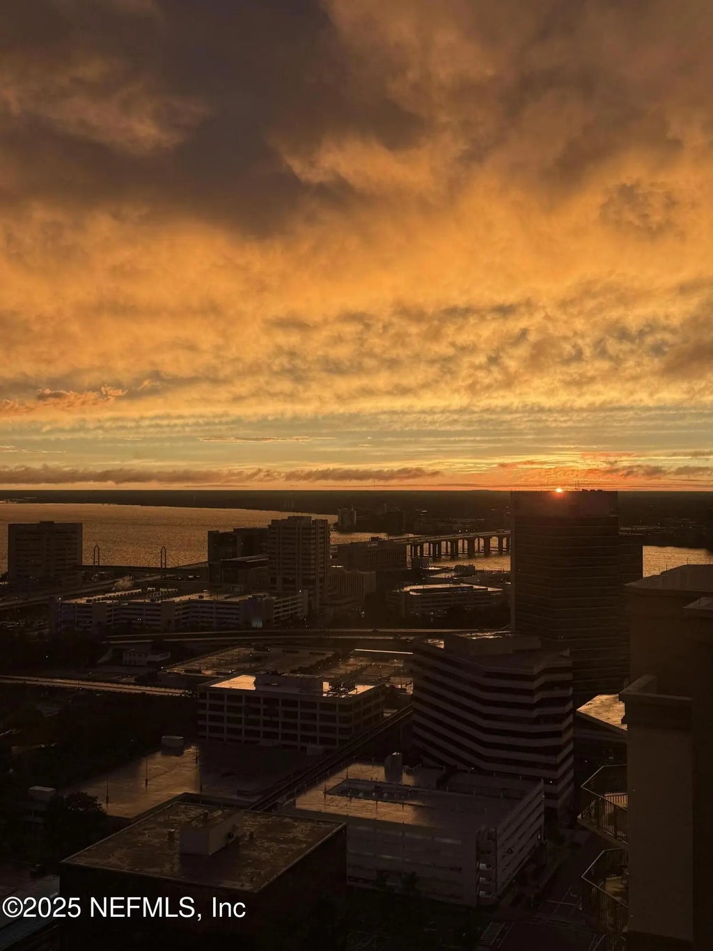 Turn-key ready Castle in the sky! This stunning 2 bedroom, 2 full bathroom condo is one the few that features incredible downtown and St. Johns river views. Packed with customizations including 3 fully built-out closets, a Murphy bed/entertainment center, and automatic blind throughout. A large island with a kitchen-full of granite counter tops, sets the perfect entertaining and cooking space, while brand new appliances provide all the conveniences you'd love. The spacious balcony is large enough for any seating options or dining space for sunsets on top of the city, stretching from the heart of downtown all the way to the souther St. Johns river. This property boasts the best collection of amenities in the greater Jacksonville are. 24 hour concierge, large pool, hot tub, billiards, and poker lounge, gym and spa, as well as a full clubhouse on the 38th floor rooftop offering 360 degree views!